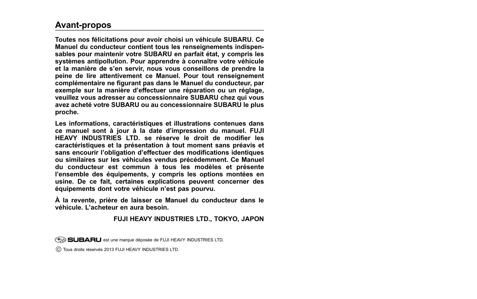 2013-2014 Subaru Forester Owner's Manual | French