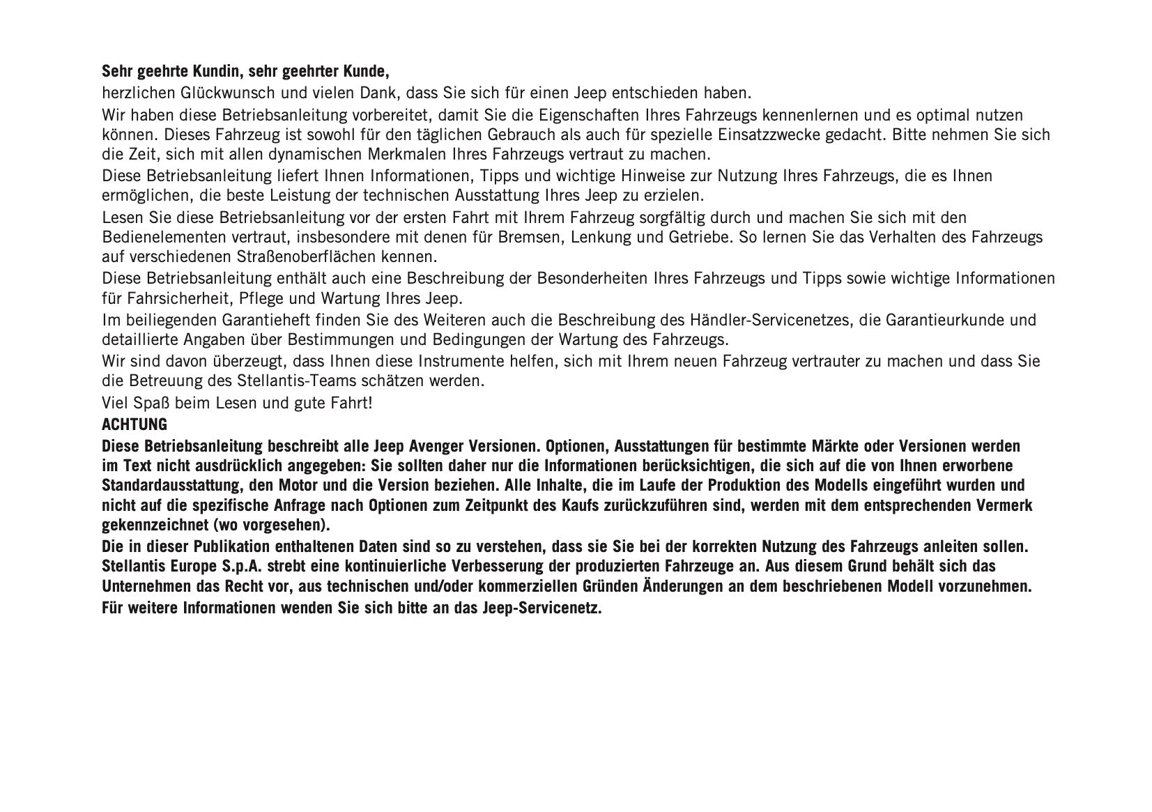 Dieses 370-seitige deutsche Autohandbuch, das auf Anfrage gedruckt, bietet umfassende Anweisungen für Ihren Jeep Avenger.